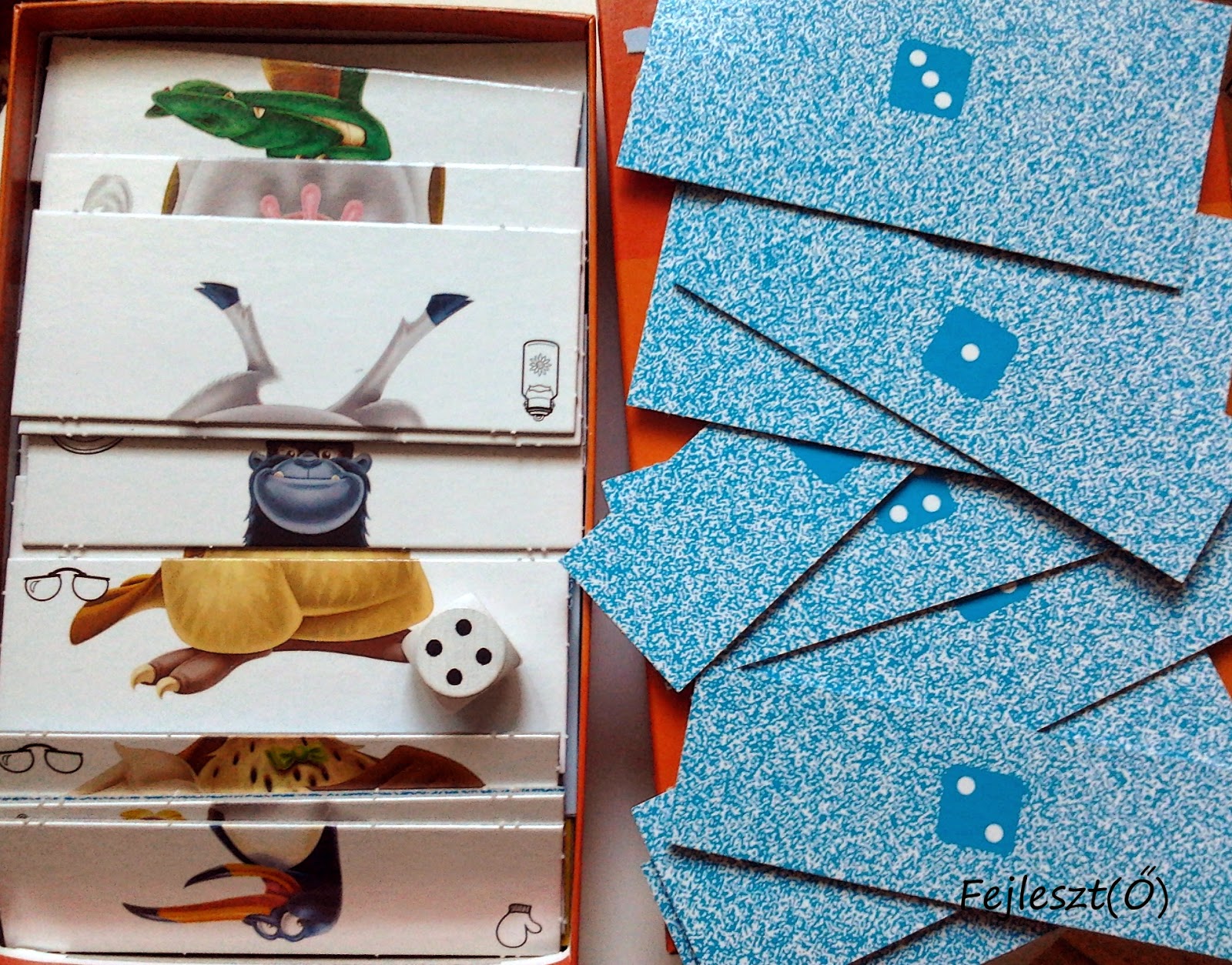 Egy vidám testkép fejlesztő játékról van szó, jó minőségű vastag kartonból. Különböző állatok képei vannak 4 részre vágva (fej, karok, törzs, lábak). A kártyák hátoldalán egytől négyig a dobókocka képe van. Lefordítva kell kitenni az összes kártyát, az asztal közepére. A dobott kockaszámnak megfelelően, a játékos, kivesz egy kártyát a kupacból. Mivel csak egytől négyig vannak a számok, ezért aki 5-öst dob, annak pechje van (nem vehet lapot), viszont aki 6-ost dob, az azt a kártyát választja, amelyiket akarja. A játék addig folytatódik, míg van gazdátlan kártyalap, a végén mindenki összerakja a lehető legtöbb állatott a gyűjtött részekből – a kombinációs lehetőségek határtalanok.
