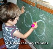- Először nagy felületen dolgozzunk (táblán, tükrön borotvahabbal, homokban, háztartási csomagolópapíron), talán ez a legfontosabb! Kezdetben nem kell ceruzát, filcet használnia a gyermeknek. Használja az ujját, hogy érzékelje az anyagokat, tapasztalatot szerezzen és kedvet kapjon a későbbiekben a papír-ceruza feladatokhoz is.