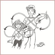 - Segítsük a gyermeket verbális utasításokkal és ritmusos mondókákkal arra vonatkozólag, honnan kell indulnia és merre tart, hogy még jobban bevésődjön a tudatába a mozdulat.